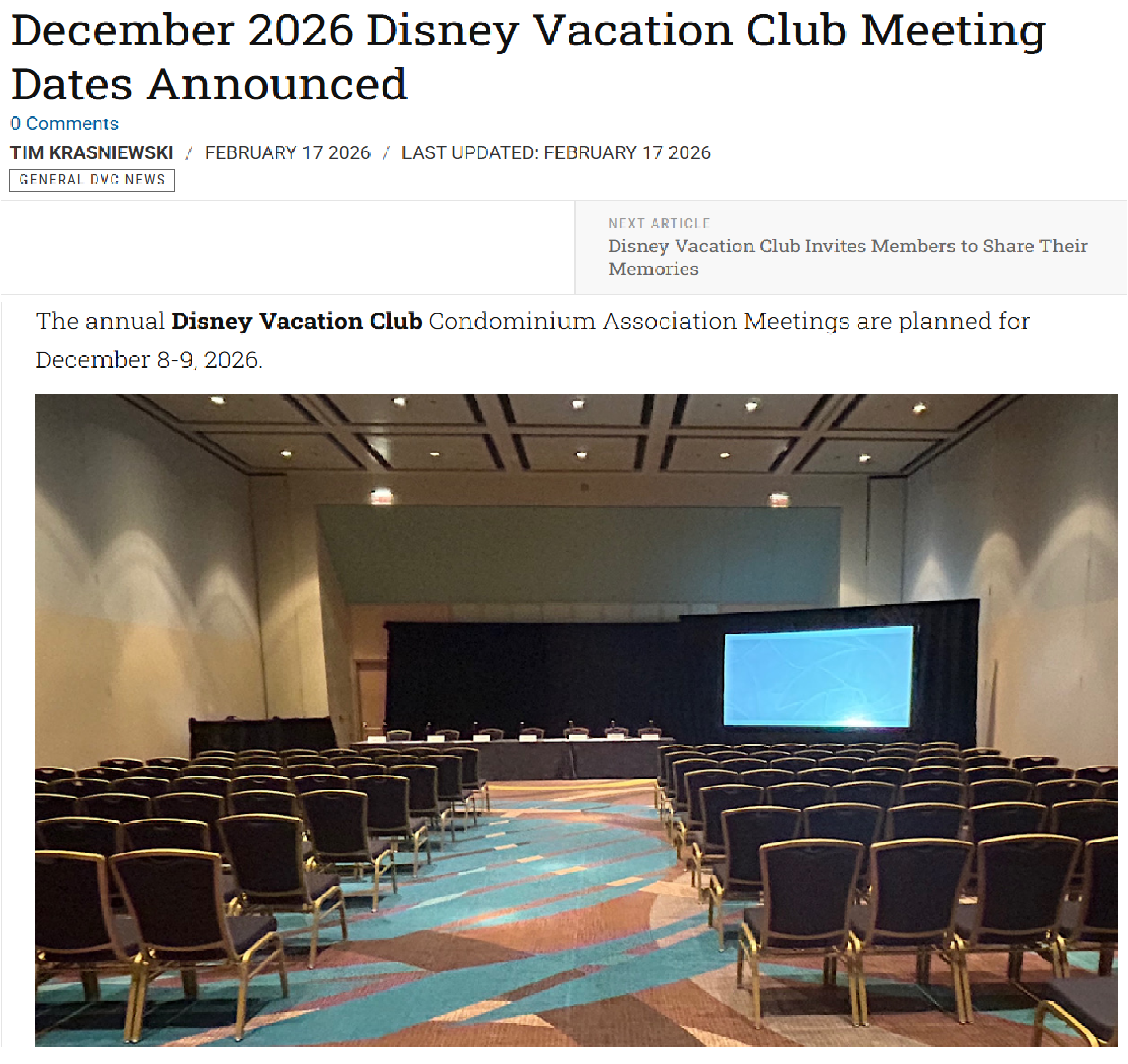 December 2026 Disney Vacation Club Meeting Dates Announced