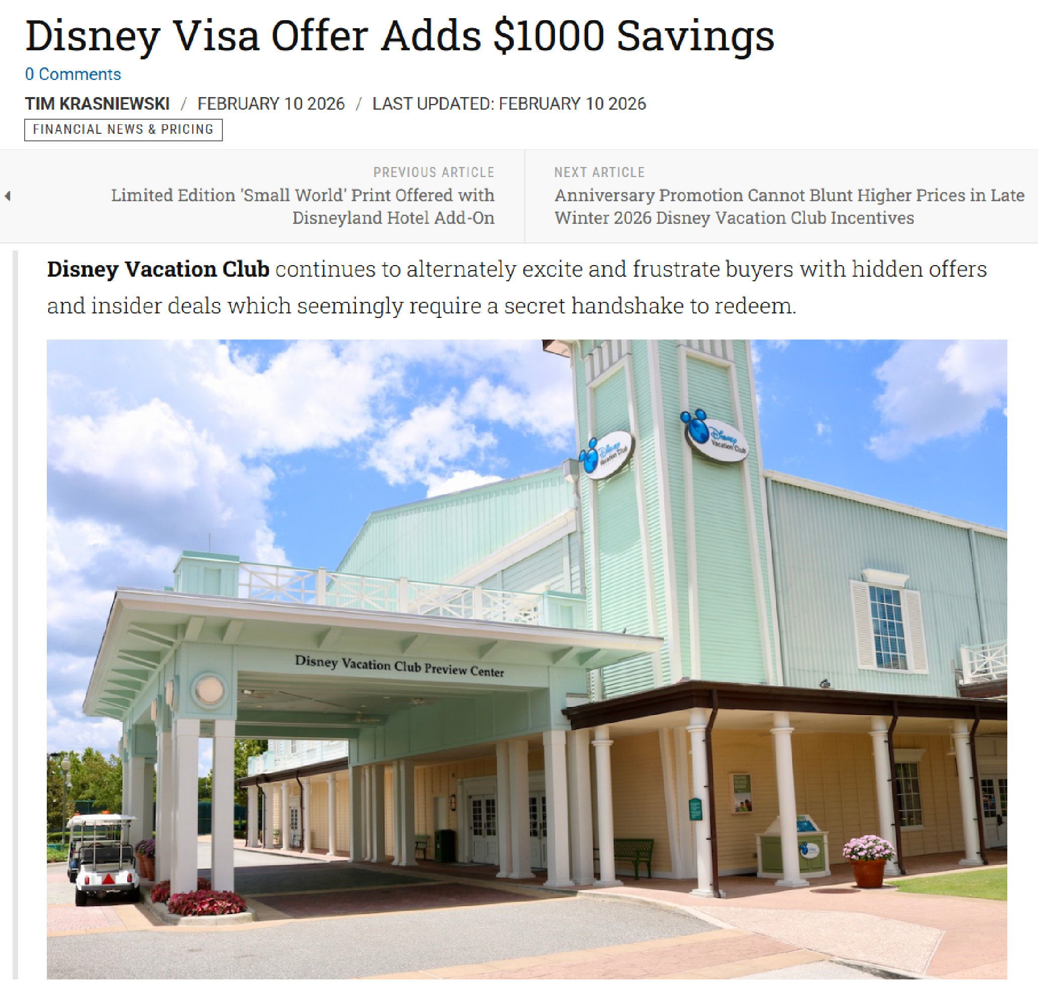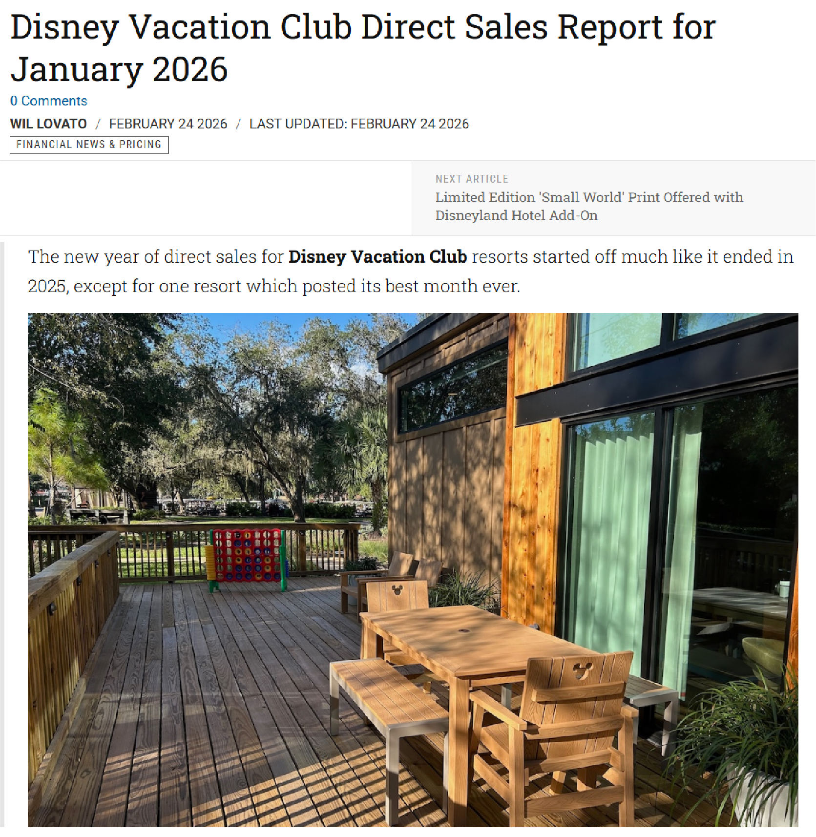 Disney Vacation Club Direct Sales Report for January 2026