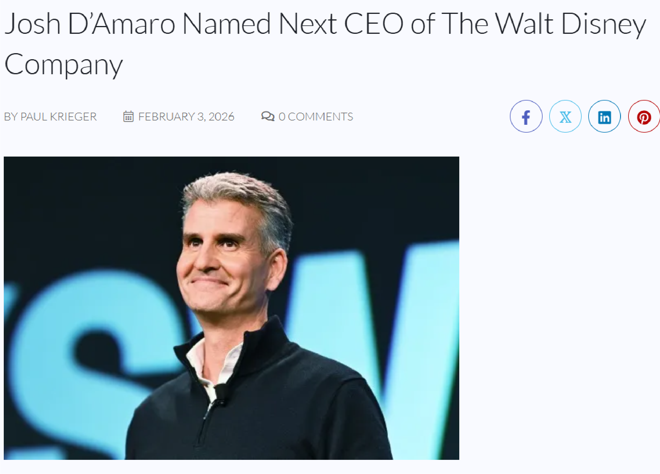 Josh D’Amaro Named Next CEO of The Walt Disney Company