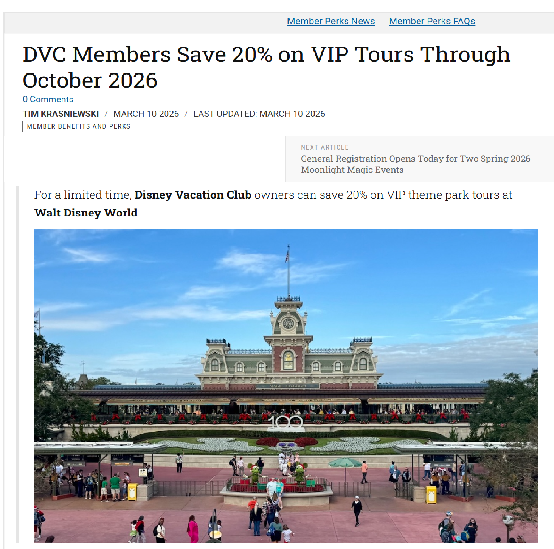 For a limited time, Disney Vacation Club owners can save 20% on VIP theme park tours at Walt Disney World.