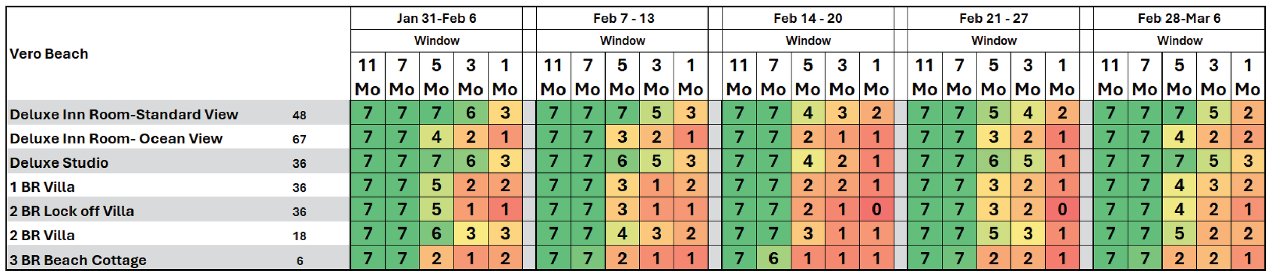 Vacations at Vero during these select weeks require more points than in other months. However, guests can look forward to a wealth of availability at the resort across both the 11-month and 7-month booking windows.