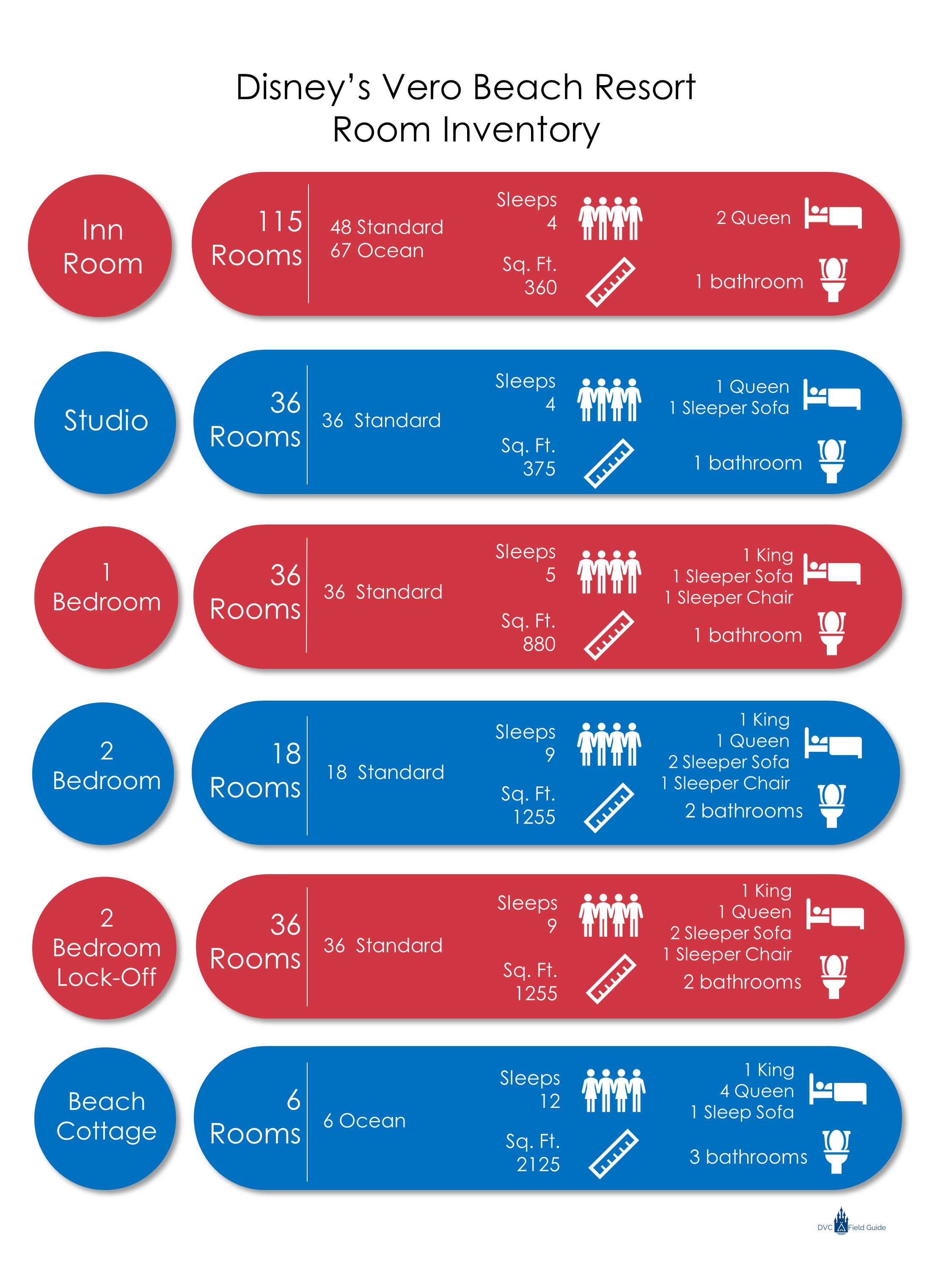 Disney's Vero Beach Resort was the second DVC resort to open and the first located away from a Disney theme park. Located about 100 miles from Walt Disney World, this charming resort offers 175 accommodations at a beach in Disney's backyard. The resort also has some of the lowest points/night of any DVC resort. The large rooms and varied room inventory are a plus. The Inn rooms are located in the main house, while the Deluxe Studios and One-Bedroom and Two-Bedroom Villas are situated in three villa buildings away from the lobby. There is limited covered parking underneath each of them. The Three-Bedroom Cottages have breathtaking ocean views from your very own balcony.